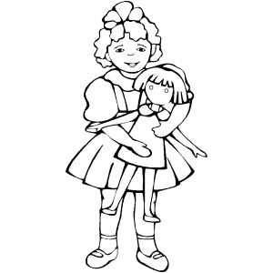Little Girl With Rabbit Doll Coloring Page Stock Vector ...